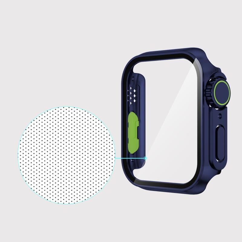 For Apple Watch Series 9 / 8 / 7 45mm Film PC Watch Case with Detachable Button(Dark Blue)