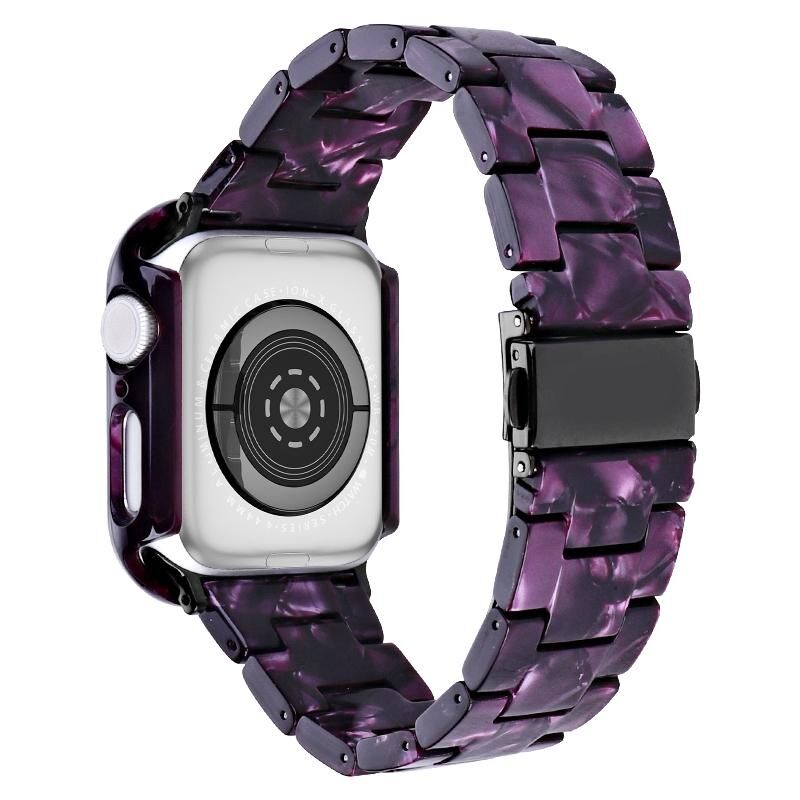 For Apple Watch Series 9 / 8 / 7 45mm Printed Resin PC Watch Band Case Kit(Purple)