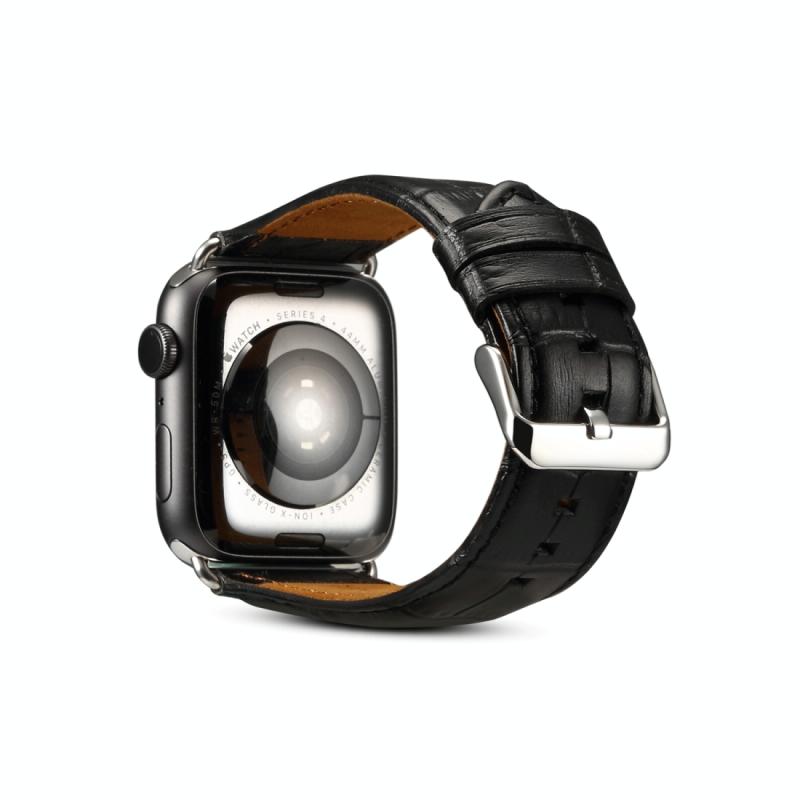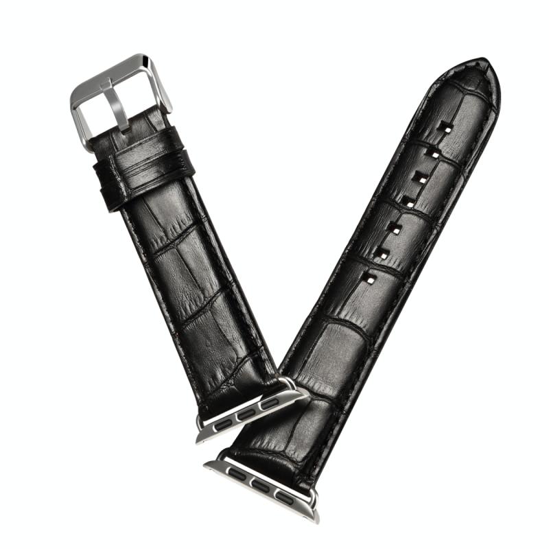 Για Apple Watch Series 9&8&7 41mm / SE 3&SE 2&6&SE&5&4 40mm / 3&2&1 38mm Δερμάτινο Λουρί με Υφή Κροκόδειλου (Μαύρο)