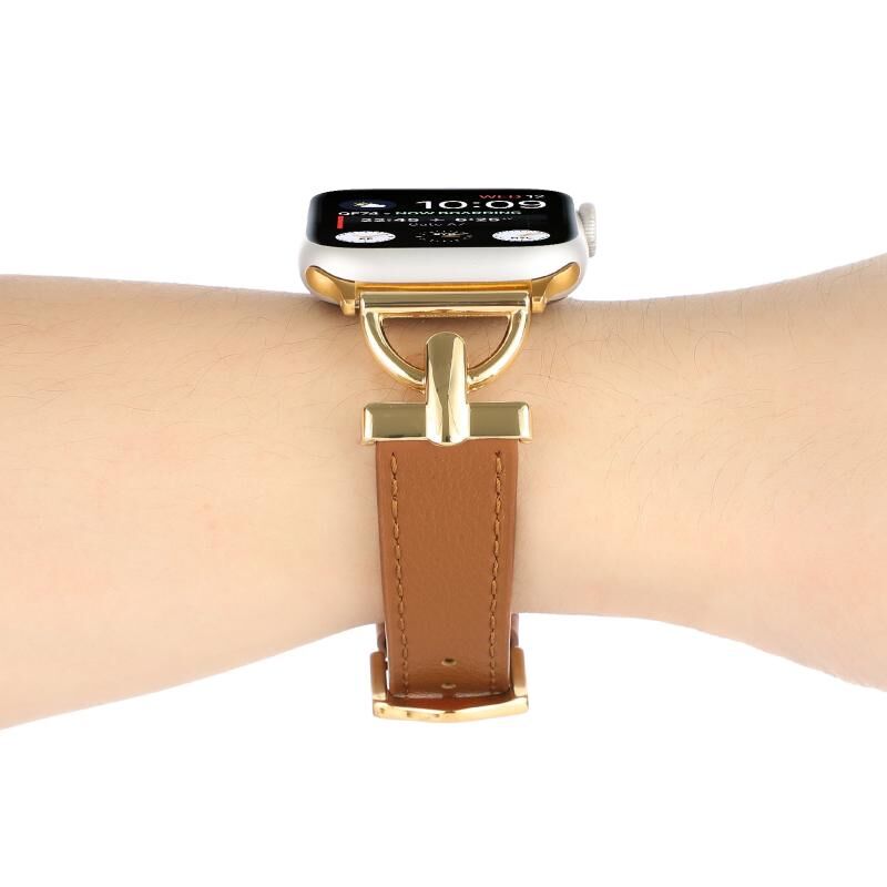 Για Apple Watch Series 9&8&7 41mm / SE 3&SE 2&6&SE&5&4 40mm / 3&2&1 38mm Λουρί ρολογιού από γνήσιο δέρμα με αγκράφα D (Πορτοκαλί)