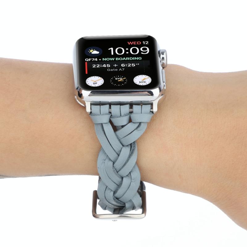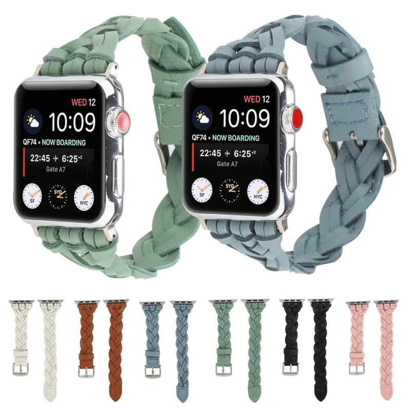 Για Apple Watch Series 9&8&7 41mm / SE 3&SE 2&6&SE&5&4 40mm / 3&2&1 38mm Δερμάτινο Πλεκτό Μονόστροφο Λουρί Ρολογιού (Λευκό)