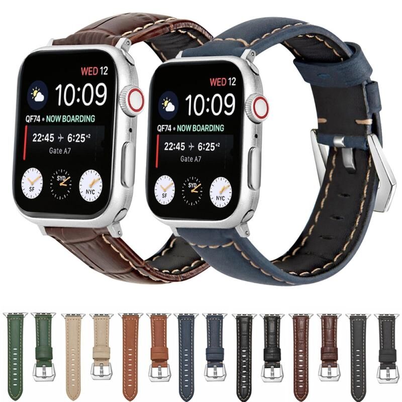 Για Apple Watch Series 9&8&7 41mm / SE 3&SE 2&6&SE&5&4 40mm / 3&2&1 38mm Ασημένια Αγκράφα Αυθεντικό Δερμάτινο Λουρί Ρολογιού (Κροκόδειλος Μαύρο)