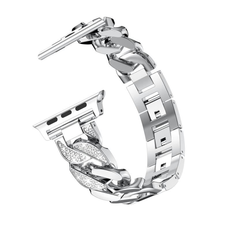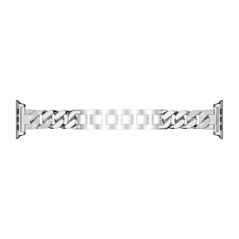 Για Apple Watch Series 9&8&7 41mm / SE 3&SE 2&6&SE&5&4 40mm / 3&2&1 38mm Μονή σειράς λουρί ρολογιού από τζιν και κράμα διαμαντιών (Ασημί)