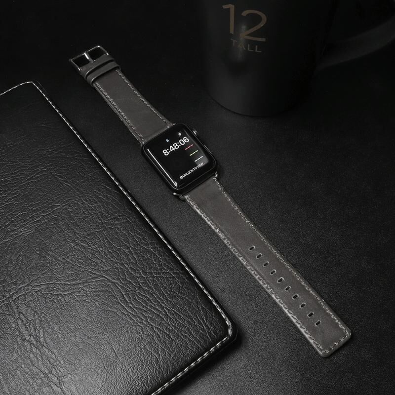 Για Apple Watch Series 9&8&7 41mm / SE 3&SE 2&6&SE&5&4 40mm / 3&2&1 38mm Λουράκι ρολογιού από δέρμα Crazy Horse με τετράγωνο άκρο και ρετρό υφή (Μαύρο)