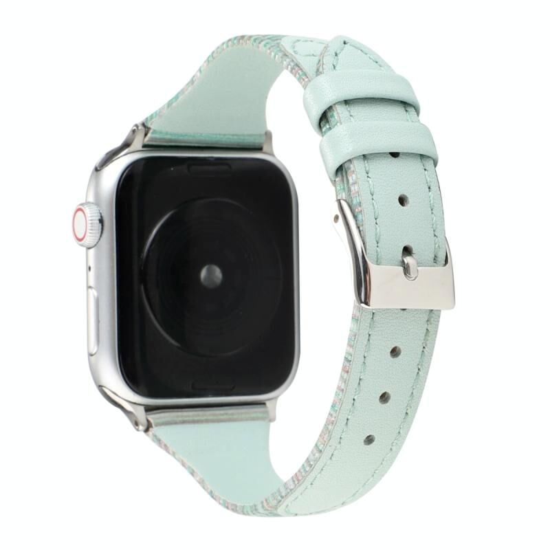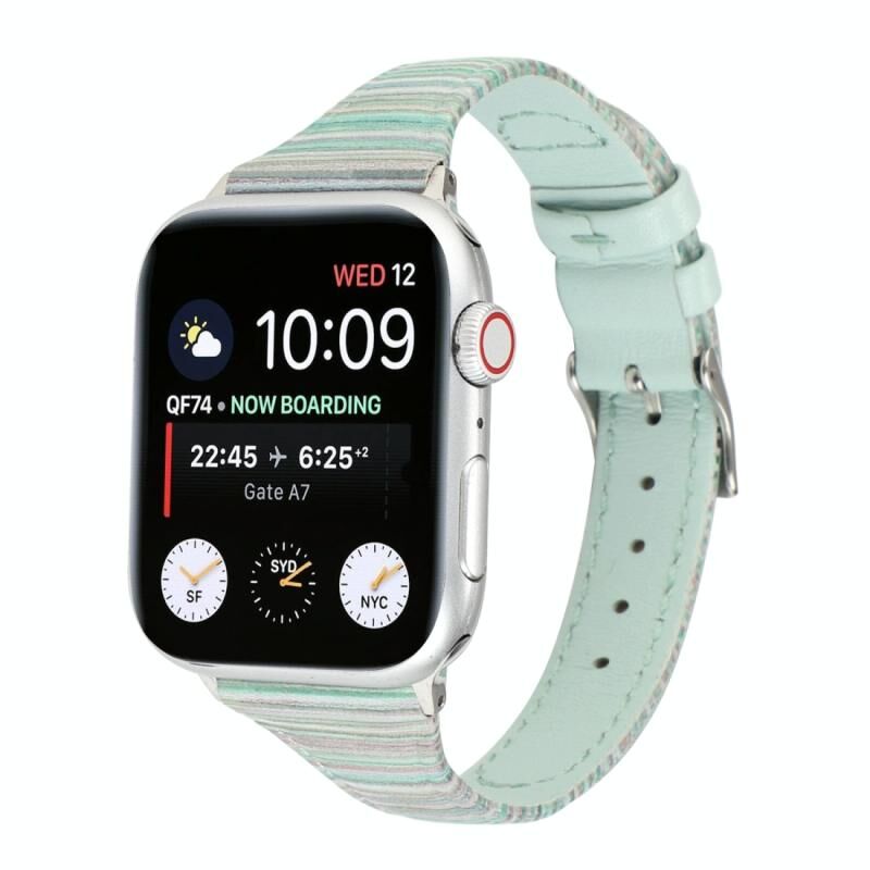 For Apple Watch Series 9&8&7 41mm / SE 3&SE 2&6&SE&5&4 40mm / 3&2&1 38mm Stitching Stripes Genuine Leather Watch Band Watch Band(Green)