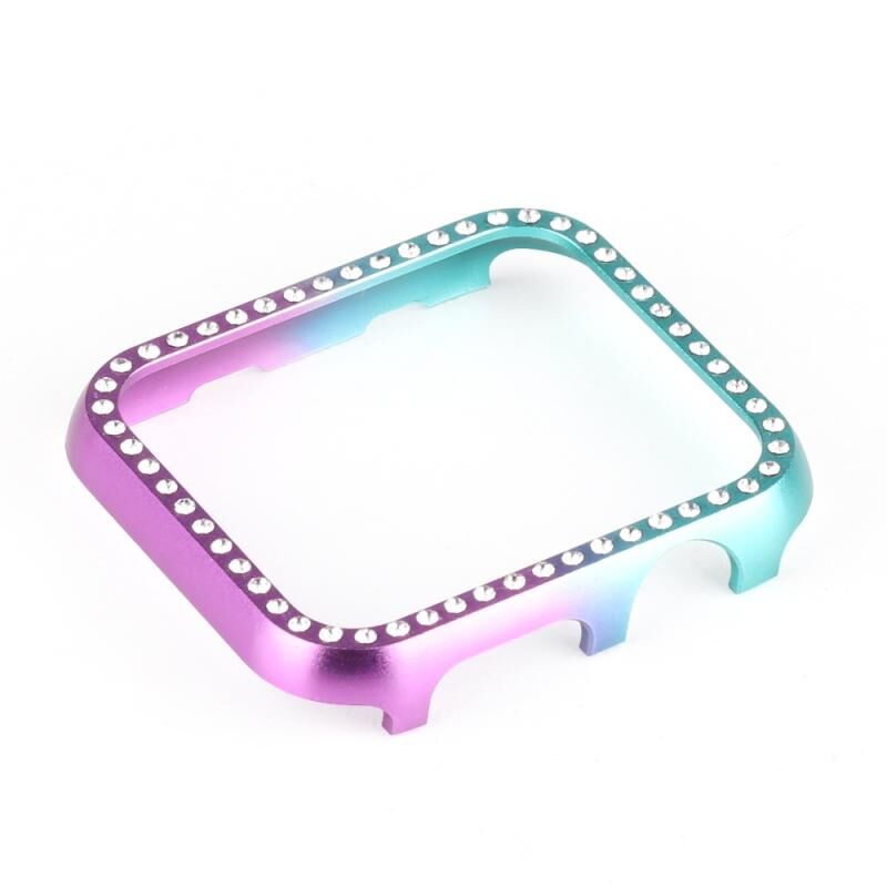For Apple Watch Series SE 2&6&SE&5&4 44mm Aluminum Alloy Diamond Watch Protective Case(Green Purple)