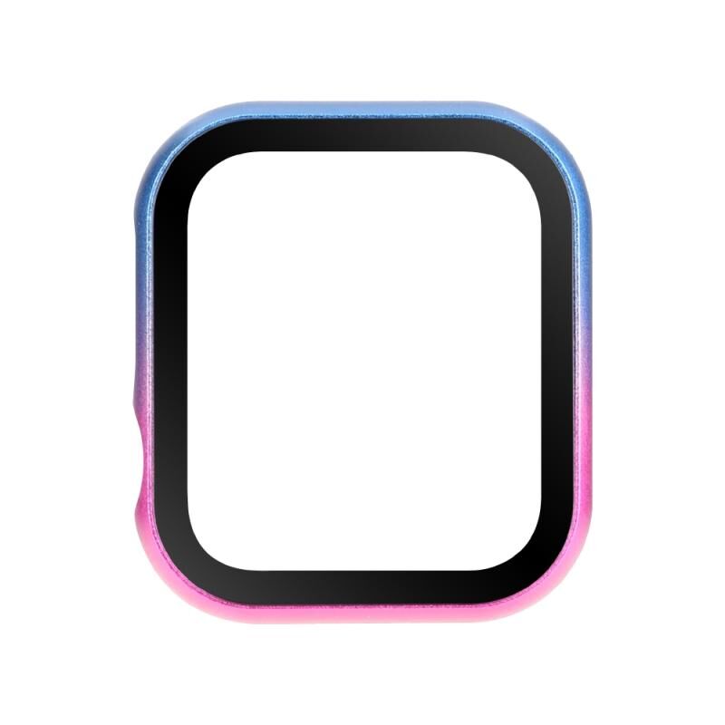 For Apple Watch Series SE 2&6&SE&5&4 44mm Metal Frame + Tempered Glass Protector Case(Pink Blue)