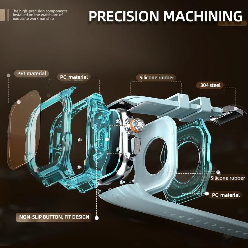 Για Apple Watch Ultra 1 / 2 49mm RedPepper Armor Μεταλλική Θήκη με Ενσωματωμένο Σιλικόνης Λουράκι (Διαφανές Χρυσό Μπεζ) (RedPepper)