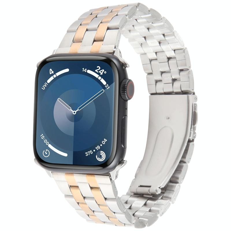 Για Apple Watch Ultra 2 49mm 22mm Εξαιρετικά λεπτό λουρί ρολογιού από ανοξείδωτο ατσάλι με πέντε χάντρες (Ασημί Ροζ Χρυσό)