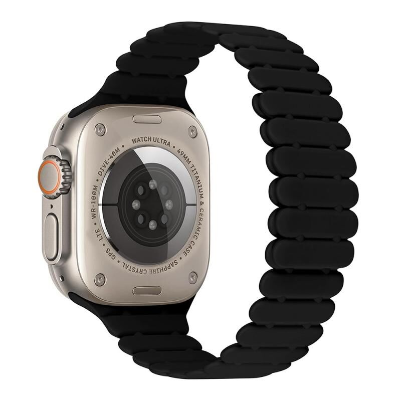 Για Apple Watch Ultra 2 49mm Μπαμπού Μαγνητικό Λουράκι Σιλικόνης (Μαύρο)