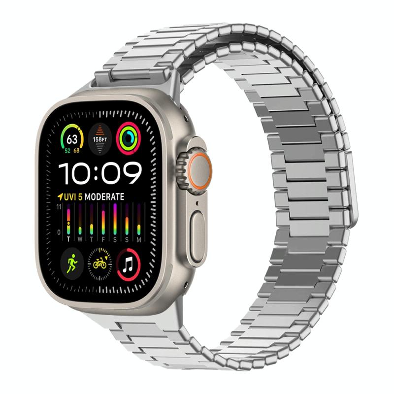 For Apple Watch Ultra 2 49mm Bamboo Magnetic Stainless Steel Metal Watch Strap(Silver)