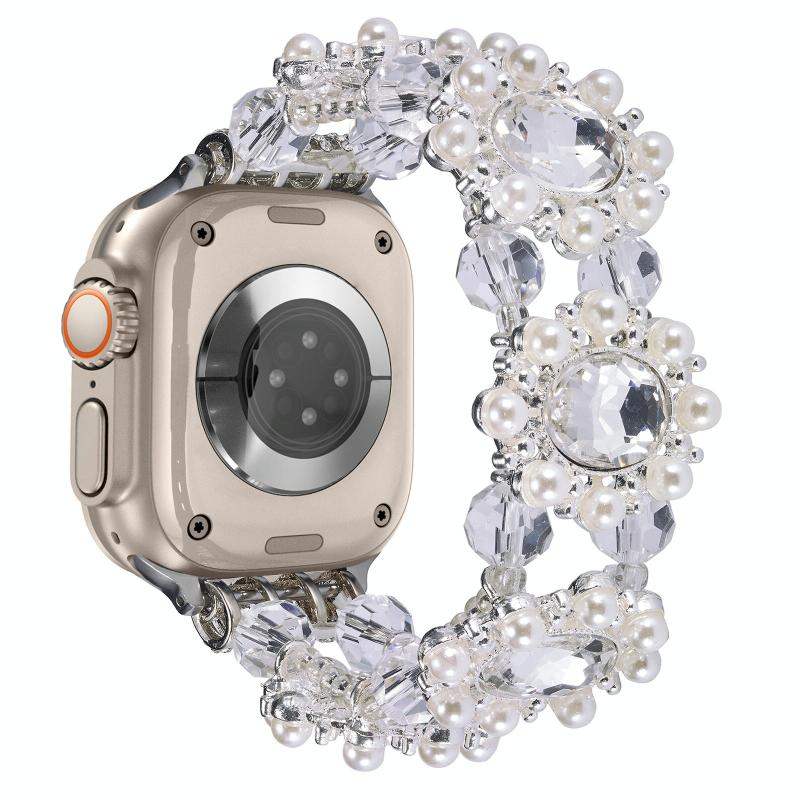 For Apple Watch Ultra 2 49mm Beaded Pearl Gemstone Bracelet Watch Band(White)