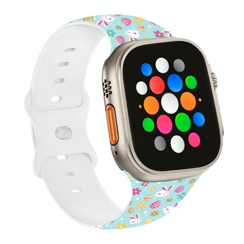 Για Apple Watch Ultra 2 49mm Λουρί Σιλικόνης με Αγκράφα Πεταλούδας με Εκτύπωση Πασχαλινή (Πράσινο του Πάσχα)