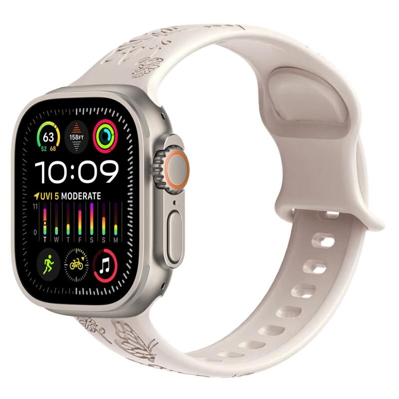 Για Apple Watch Ultra 2 49mm Λουρί Σιλικόνης με ανάγλυφο σχέδιο πεταλούδας και λουλουδιών (Starlight)