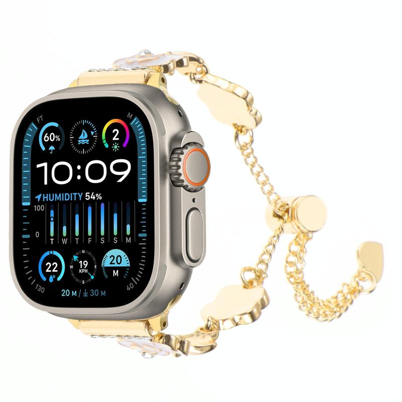 Για Apple Watch Ultra 2 49mm Μεταλλικό Μπρασελέ Λουλουδιού Καμέλιας (Μαύρο Χρυσό)