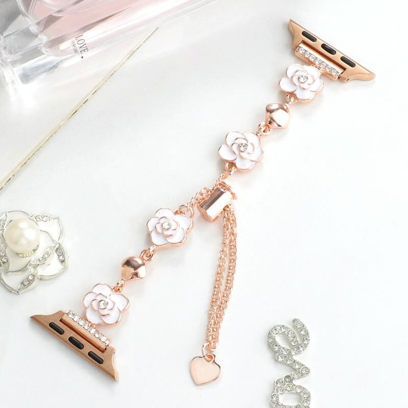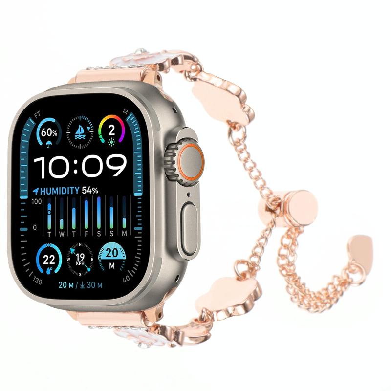 Για Apple Watch Ultra 2 49mm Μεταλλικό Μπρασελέ Λουλουδιού Καμέλιας (Μαύρο Χρυσό)