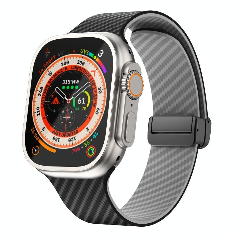 Για Apple Watch Ultra 2 49mm Λουρί ρολογιού από ανθρακονήματα με Μαγνητική Αγκράφα Μαύρου Χρώματος (Μαύρο Γκρι)