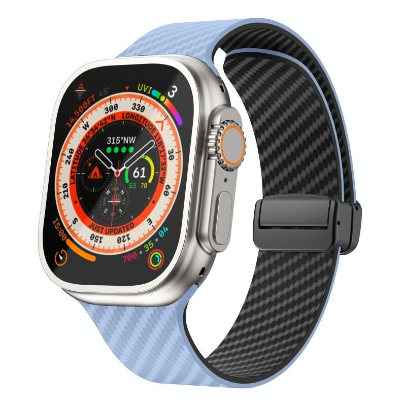 Για Apple Watch Ultra 2 49mm Λουρί ρολογιού από ανθρακονήματα με Μαγνητική Αγκράφα Μαύρου Χρώματος (Βασιλικό Μπλε Λευκό)