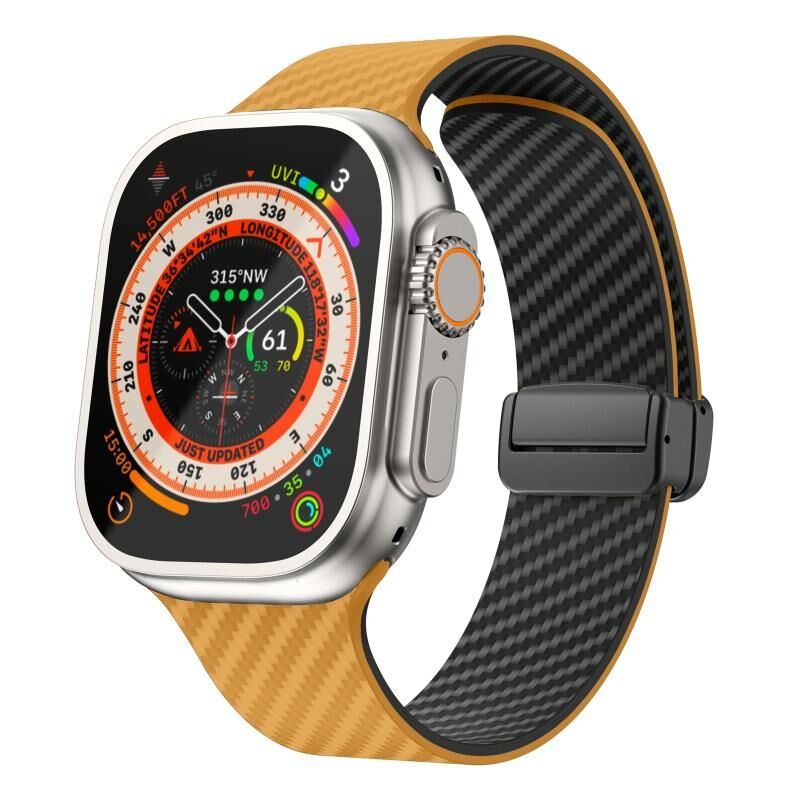 For Apple Watch Ultra 2 49mm Carbon Fiber Magnetic Black Buckle Watch Band(Light Brown Black)