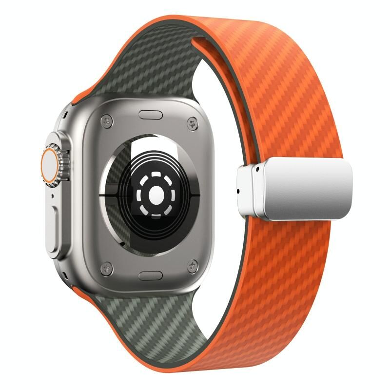 Για Apple Watch Ultra 2 49mm Λουρί ρολογιού από ανθρακονήματα με Μαγνητική Αγκράφα Μαύρου Χρώματος (Πορτοκαλί Χορτάρι)