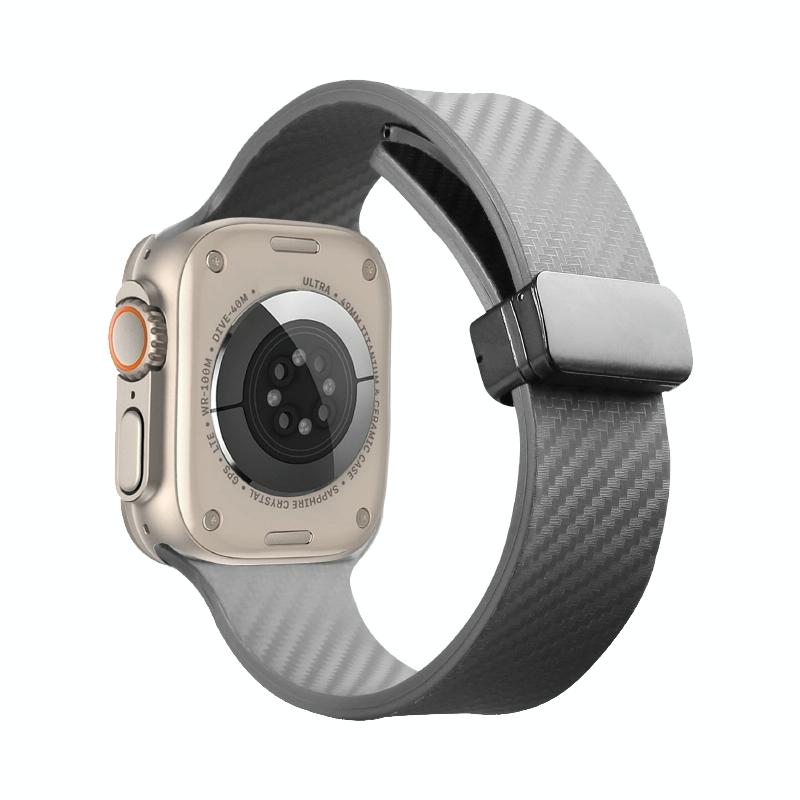 Για Apple Watch Ultra 2 49mm Λουρί Σιλικόνης με Μαγνητικό Κούμπωμα σε Σχέδιο Ίνας Άνθρακα (Γκρι)