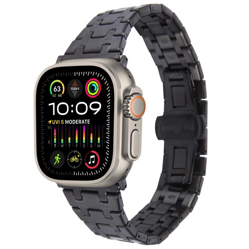 Για Apple Watch Ultra 2 49mm Διπλό Δαχτυλίδι από Ανοξείδωτο Ατσάλι (Μαύρο)