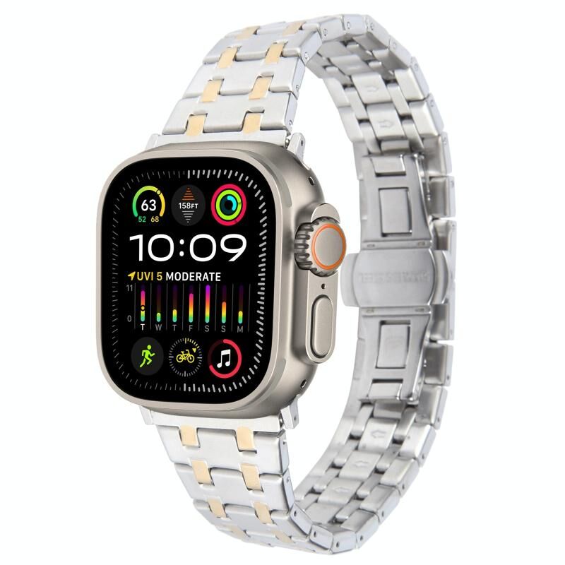 Για Apple Watch Ultra 2 49mm Διπλό Δαχτυλίδι από Ανοξείδωτο Ατσάλι (Ασημί Χρυσό)