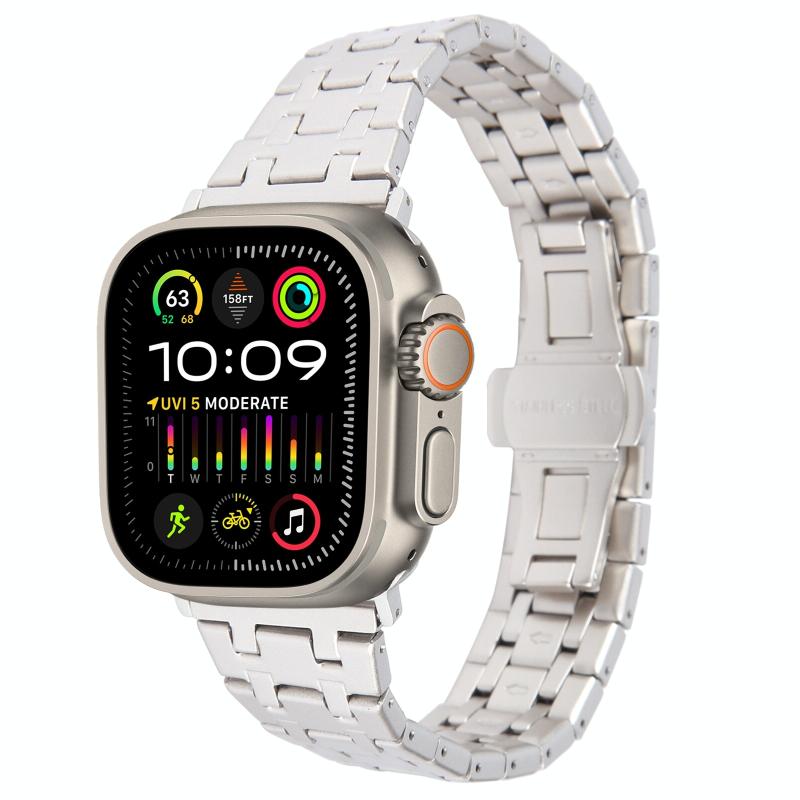 Για Apple Watch Ultra 2 49mm Διπλό Δαχτυλίδι από Ανοξείδωτο Ατσάλι (Αστρικό Φως)