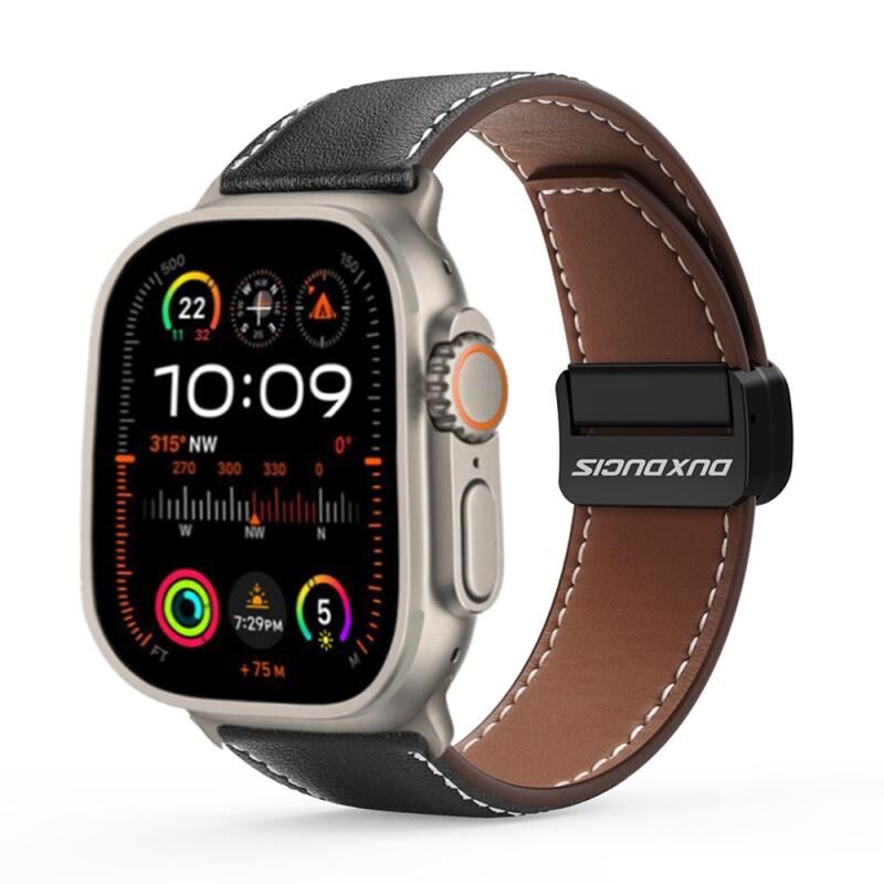 Για Apple Watch Ultra 2 49mm DUX DUCIS YA Σειρά Μαγνητικό Κούμπωμα Αυθεντικό Δερμάτινο Λουρί Ρολογιού (Μαύρο) (Μαύρο)