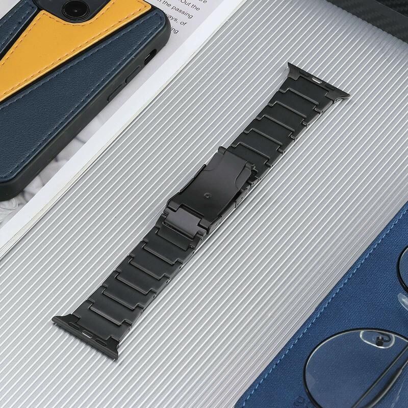 Για Apple Watch Ultra 2 49mm Λουρί Ρολογιού από Ατσάλι Τιτανίου με Πέντε Χάντρες και Αγκράφα Χελώνας (Μαύρο)