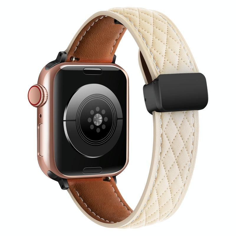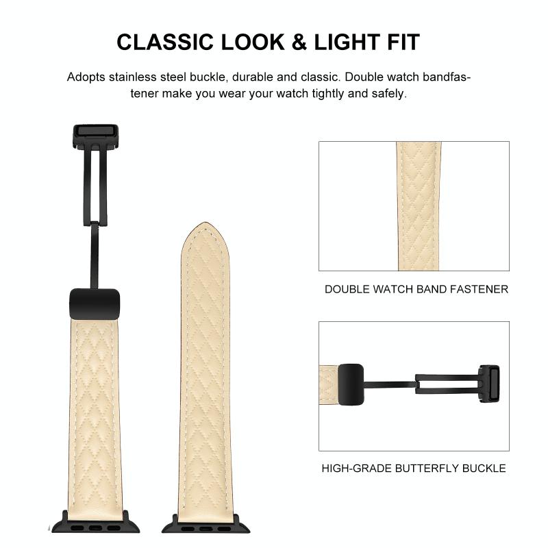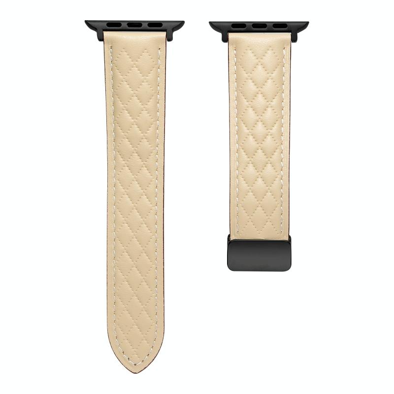 Για Apple Watch Ultra 2 49mm Πτυσσόμενο Κούμπωμα Δερμάτινο Λουρί Ρομβόσχημο (Starlight)