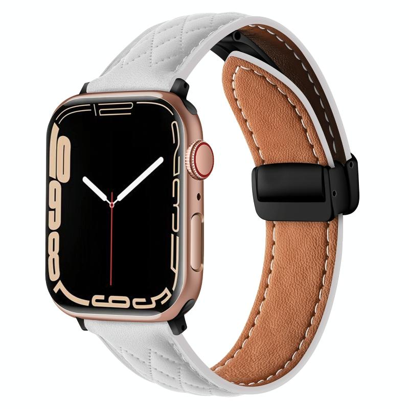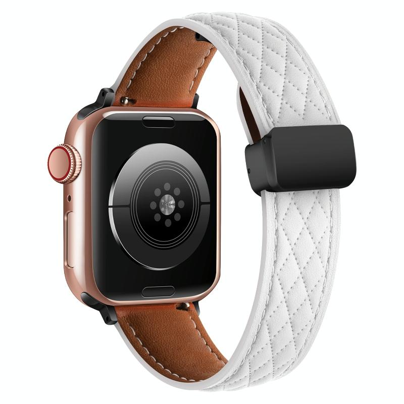 Για Apple Watch Ultra 2 49mm Πτυσσόμενο Κούμπωμα Δερμάτινο Λουρί Ρομβοειδές (Λευκό)