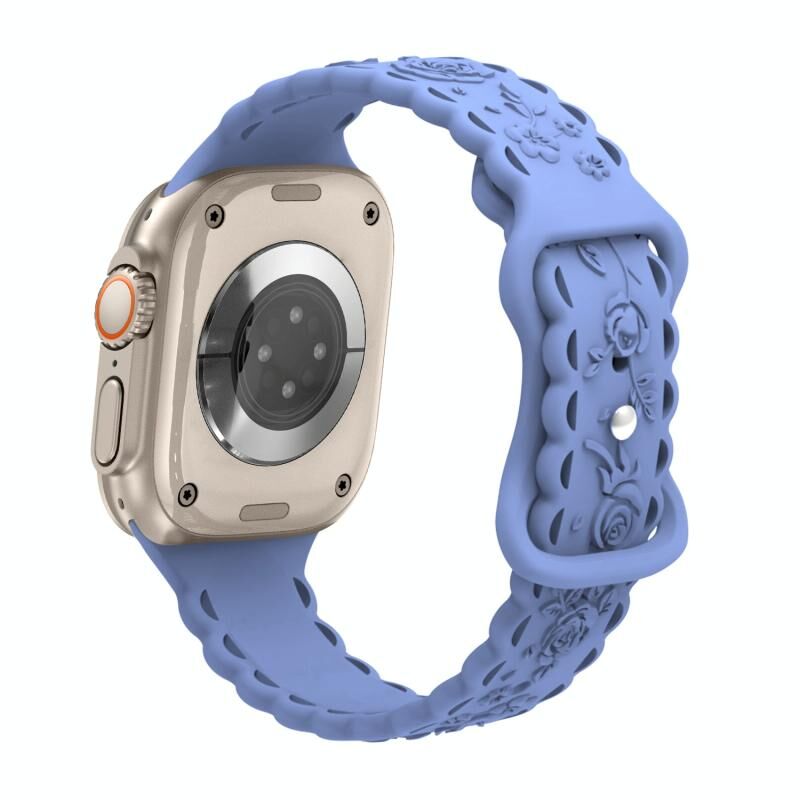 For Apple Watch Ultra 2 49mm Lace 3D Rose Embossed Silicone Watch Band(Lavender)