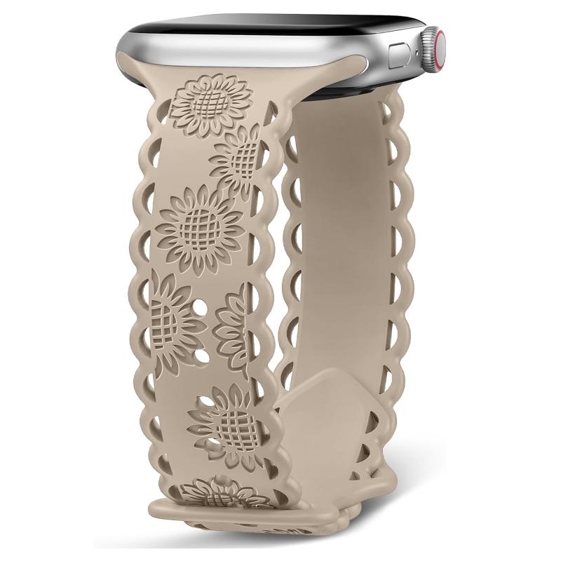 Για Apple Watch Ultra 2 49mm Δαντέλα Ηλίανθος Χαραγμένο Λουρί Σιλικόνης (Γαλακτώδες Τσάι)