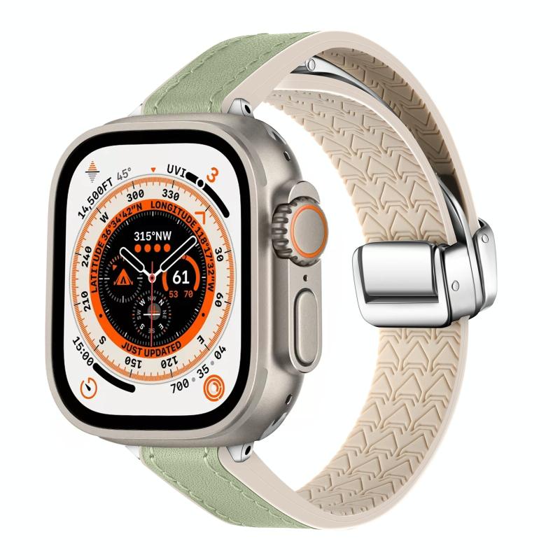 Για Apple Watch Ultra 2 49mm Μαγνητικό Δερμάτινο Λουράκι Σιλικόνης με Δίπλωμα (Κόκκινο Ρόδι)