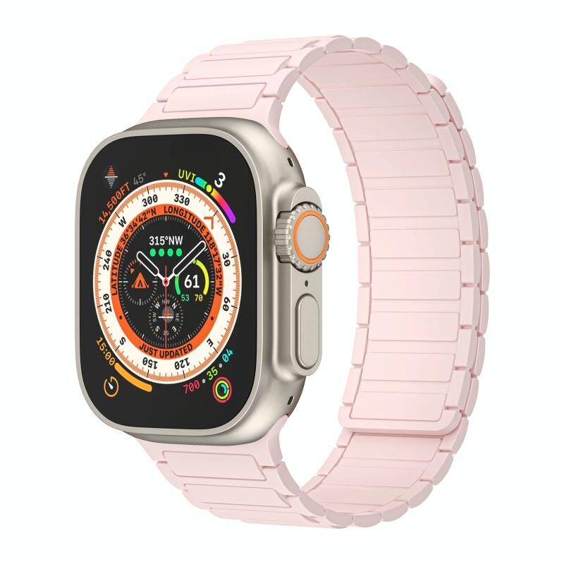 Για Apple Watch Ultra 2 49mm Μαγνητικό Λουρί Σιλικόνης (Ροζ)