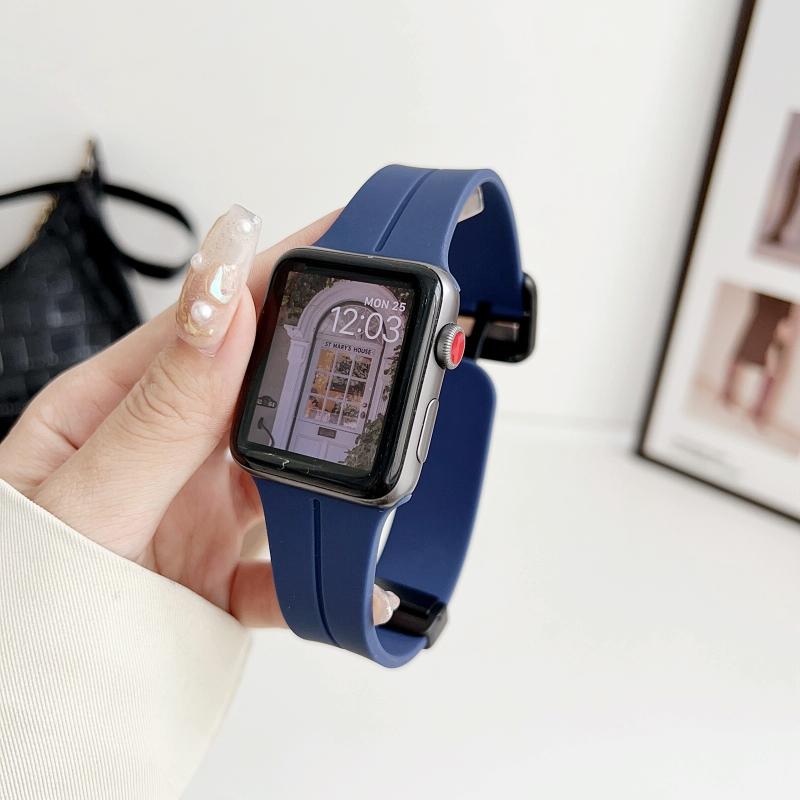 For Apple Watch Ultra 2 49mm Magnetic Square Buckle Silicone Watch Band(Midnight Blue)