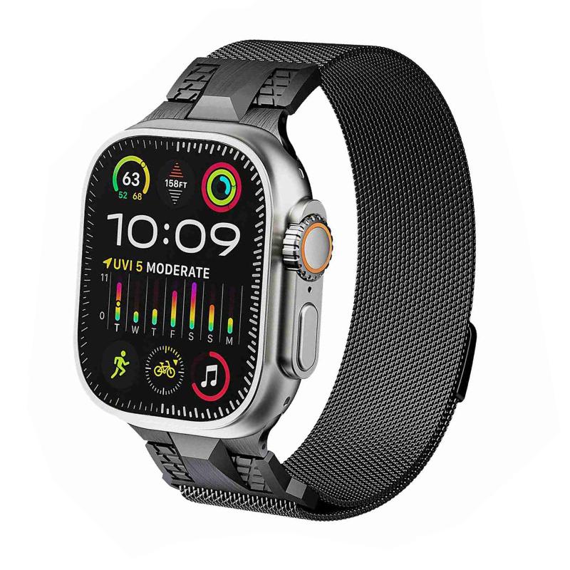 For Apple Watch Ultra 2 49mm Mecha Style Milanese Metal Watch Band(Titanium Grey)