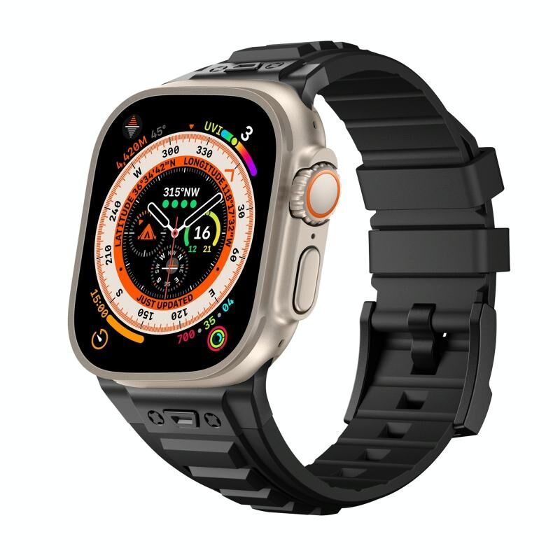 Για Apple Watch Ultra 2 49mm Μεταλλικός Συνδετήρας Σιλικόνη Λουράκι Ρολογιού (Μαύρο + Τιτανίου Αγκράφα)