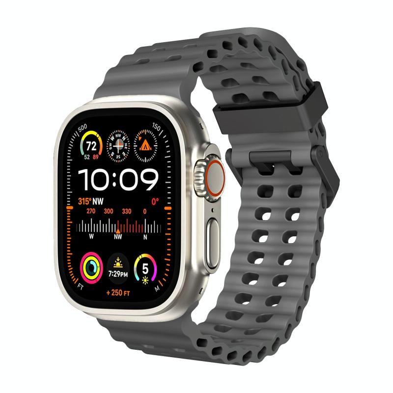 Για Apple Watch Ultra 2 49mm Λουρί Σιλικόνης για Ρολόι Ocean Διπλής Σειράς με Οπές (Γκρι)