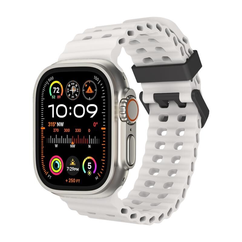 Για Apple Watch Ultra 2 49mm Λουρί Σιλικόνης για Ρολόι Ocean Διπλής Σειράς με Οπές (Starlight)