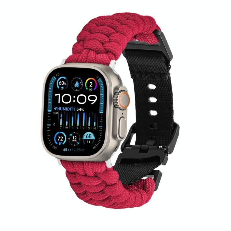 Για Apple Watch Ultra 2 49mm, Απλή πλεκτή λουρί ρολογιού από paracord με αγκράφα (Κόκκινο)