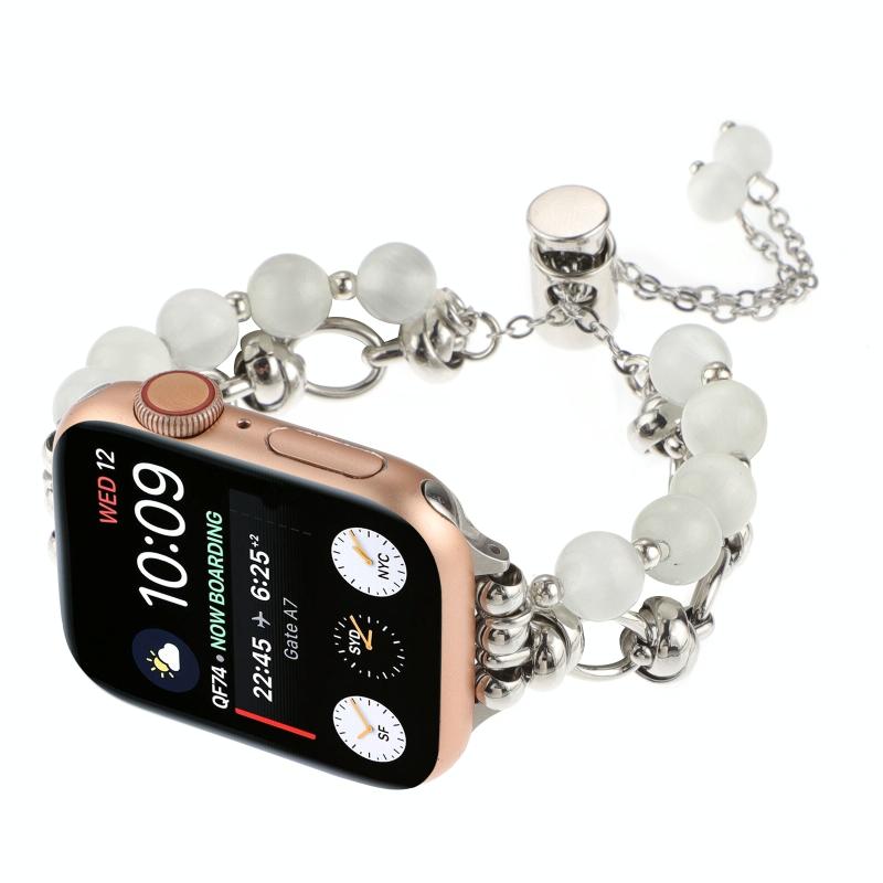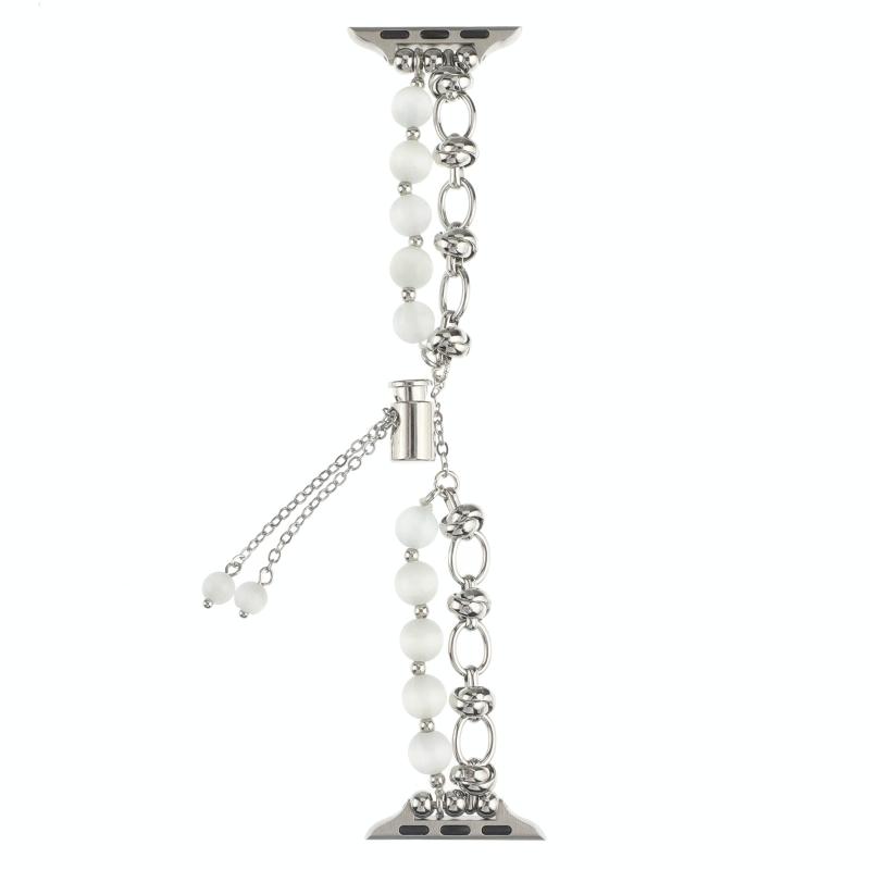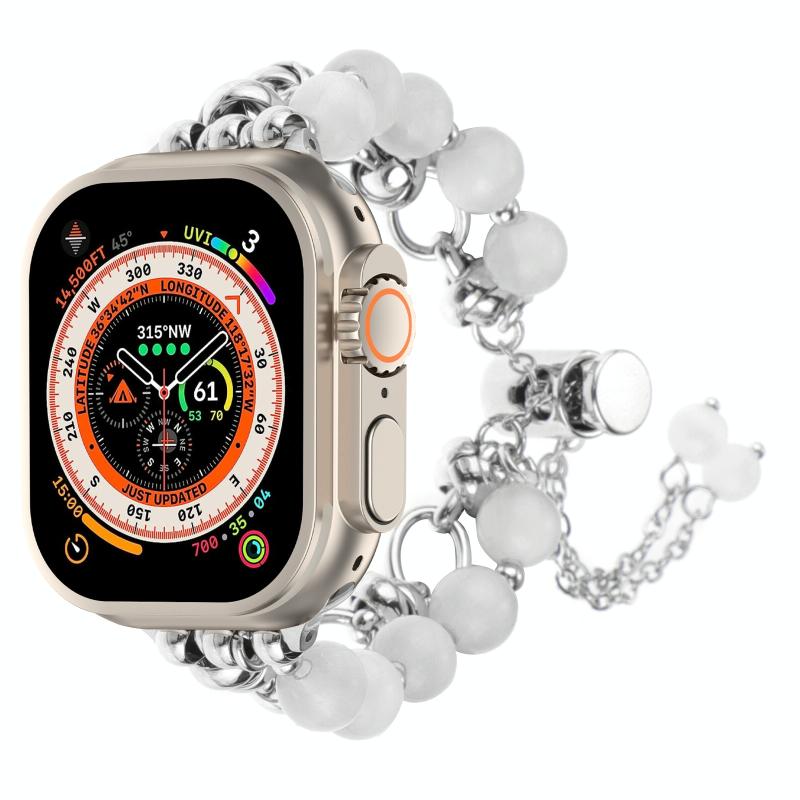 Για Apple Watch Ultra 2 49mm Μεταλλικό Μπρασελέ με Αλυσίδα Μαργαριταριών (Λευκό Ασημί)