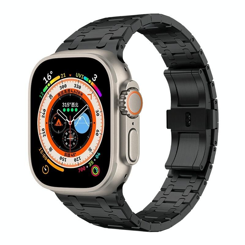 Για Apple Watch Ultra 2 49mm PG94 Διπλή Σύνδεση Τροποποιημένο Λουράκι Ρολογιού από Ανοξείδωτο Ατσάλι (Μαύρο)