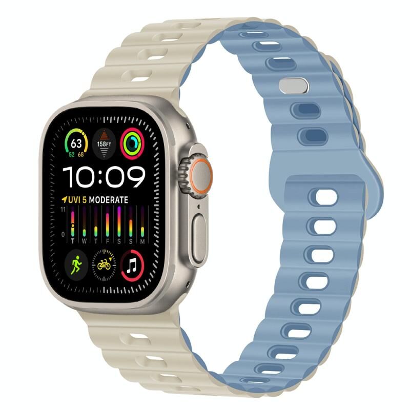 Για Apple Watch Ultra 2 49mm Αντίστροφος Αγκώνας Αναπνεύσιμος Ιμάντας Σιλικόνης (Καφέ Σέλας)