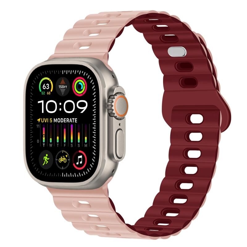 Για Apple Watch Ultra 2 49mm Αντίστροφος Αγκώνας Αναπνεύσιμος Ιμάντας Σιλικόνης (Καφέ Σέλας)