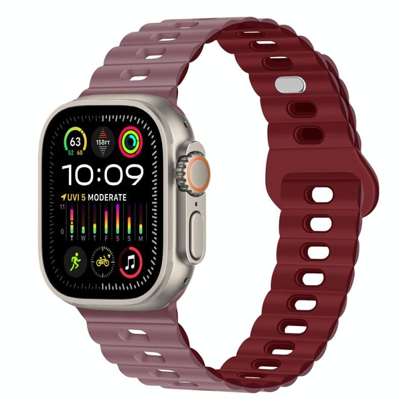 Για Apple Watch Ultra 2 49mm Αντίστροφος Αγκώνας Αναπνεύσιμος Ιμάντας Σιλικόνης (Καφέ Σέλας)