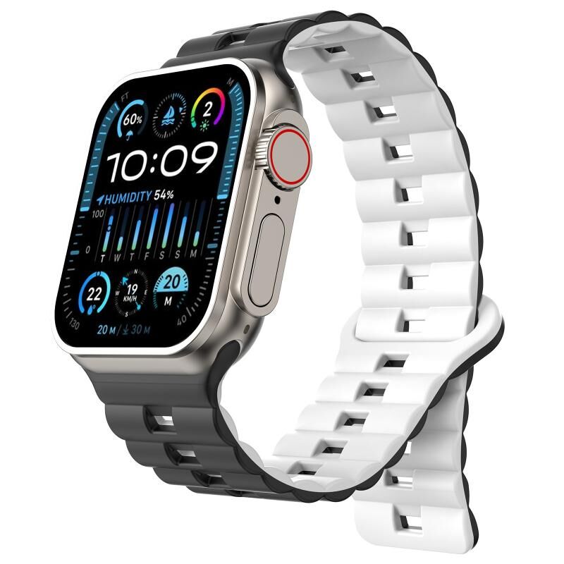 For Apple Watch Ultra 2 49mm Reverse Buckle Two Color Magnetic Silicone Watch Band(Black+White)