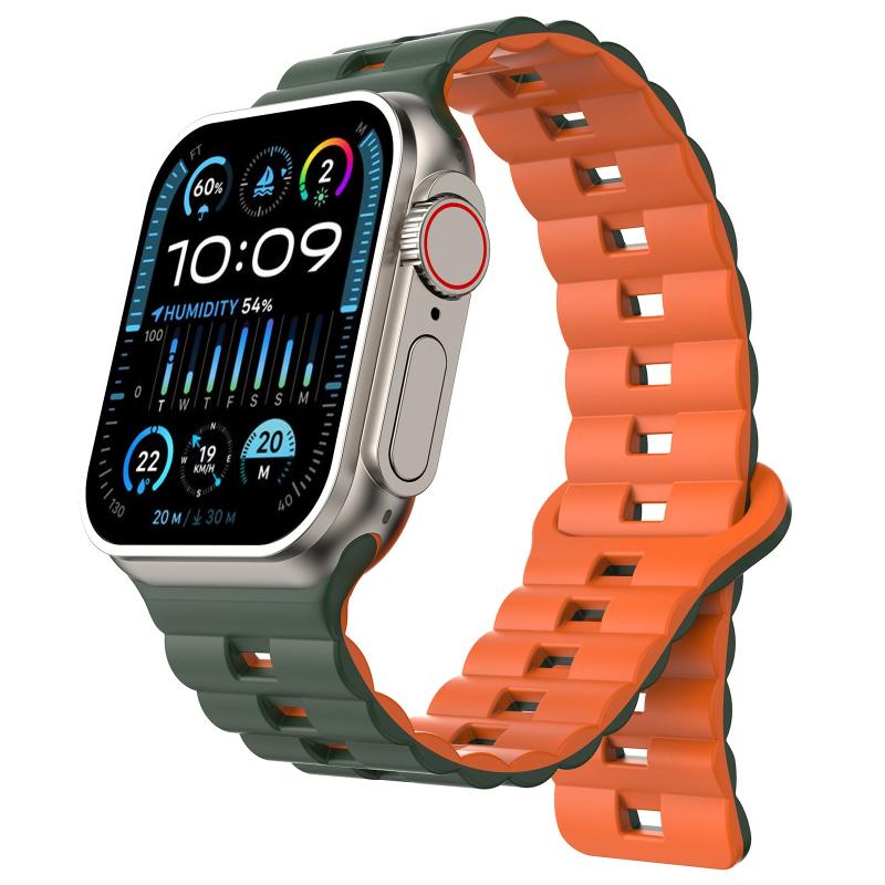 Για Apple Watch Ultra 2 49mm Αντίστροφος Αγκώνας Διχρωμικό Μαγνητικό Λουράκι Σιλικόνης (Γκρι+Πορτοκαλί)