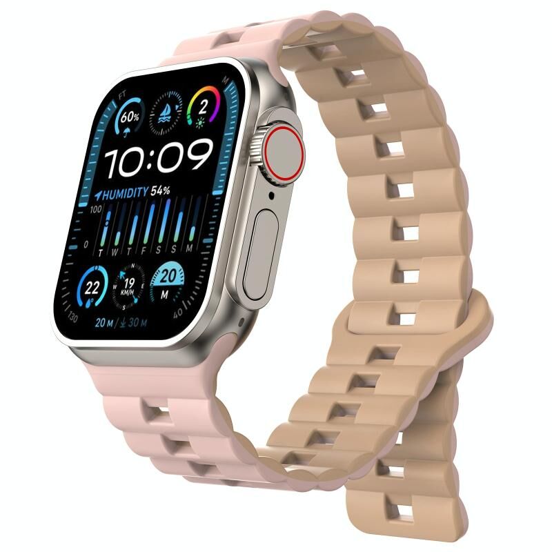 For Apple Watch Ultra 2 49mm Reverse Buckle Two Color Magnetic Silicone Watch Band(Pink+Grey)